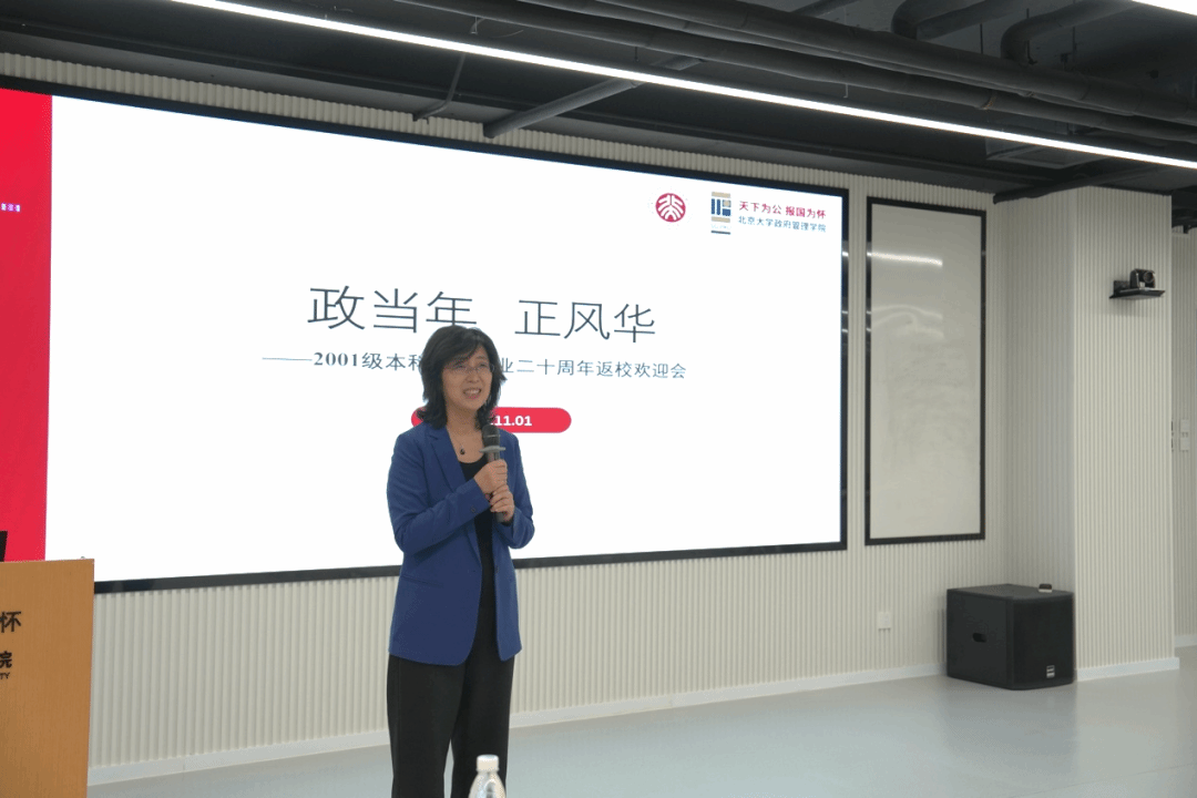 随后,句华代表学院致辞。她系统介绍了政府管理学院近二十年来在学科建设、师资发展、人才培养、科研成果及学院设施等方面的长足进步,并对院友们长期以来对学院的关注与支持表示感谢。句华强调,院友是学院最宝贵的财富,学院今日的成就离不开一代代院友的积淀与回馈。