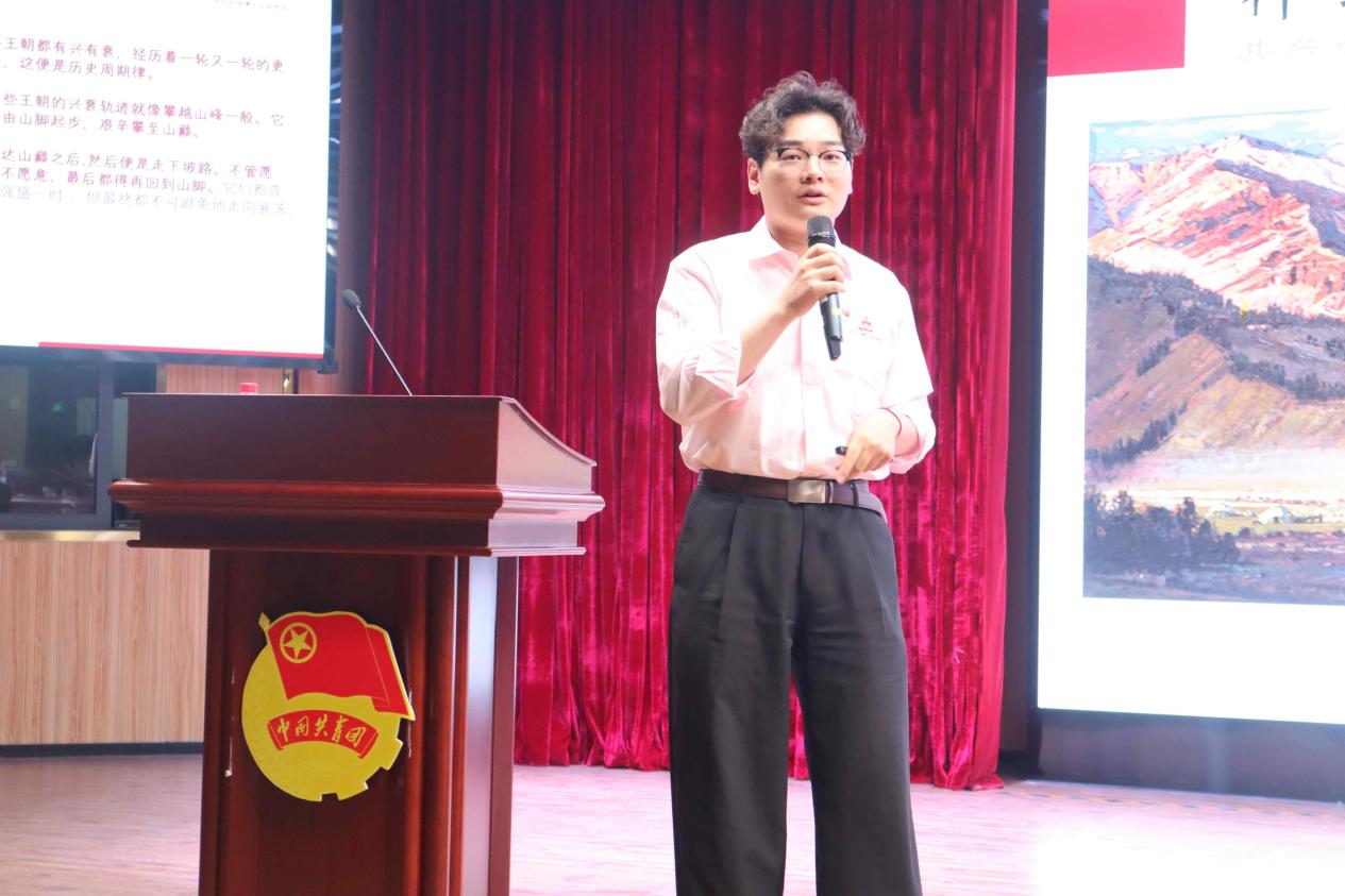 6月7日下午,开云app体育 团委博士生讲师团抵达河南师范大学。河南师范大学党委常委、副校长马治军同马克思主义学院党委书记、院长蒋占峰亲切接见了讲师团成员,并同讲师团成员深入交流。马治军对讲师团一行到来表示热烈的欢迎和感谢,希望两校青年讲师能够加强学习交流、建立长期合作机制,蒋占峰根据马克思主义学院的具体情况,以及思政理论宣讲等问题同讲师团成员们进行了交流和研讨。随后,河南师范大学站宣讲活动在东区思政平台正式举行。校团委书记马二杰、校团委副书记唐新、马克思主义学院党委副书记王秀杰以及校青年讲师团成员、未来学院青马工程班学员、大学生党员宣讲团成员、各学院学生代表参与宣讲会。