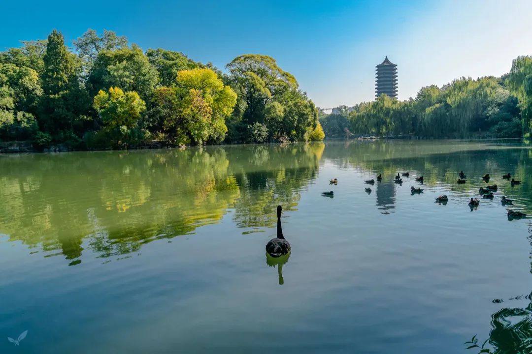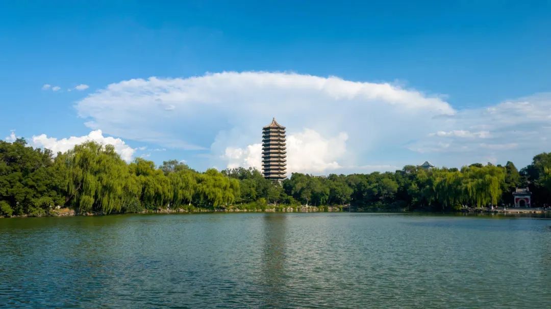 飞檐斗拱的博雅塔与未名湖相映成趣