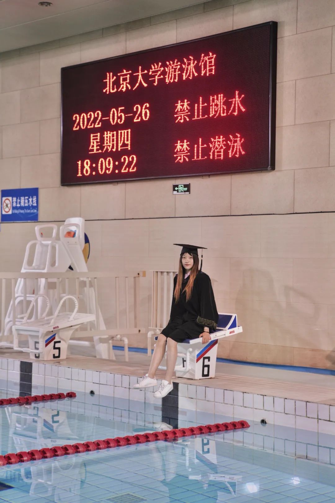 在北大,我每次站在出发台上依旧刺激且心跳加速,是这里更高的平台让我有了能够展现自己能力的空间。游泳于我已经不仅仅是一项运动,她已经深深融入了我的生活中。左手是过往的辉煌经历,右手是未来的无尽遐想,我哪个都不能放弃。