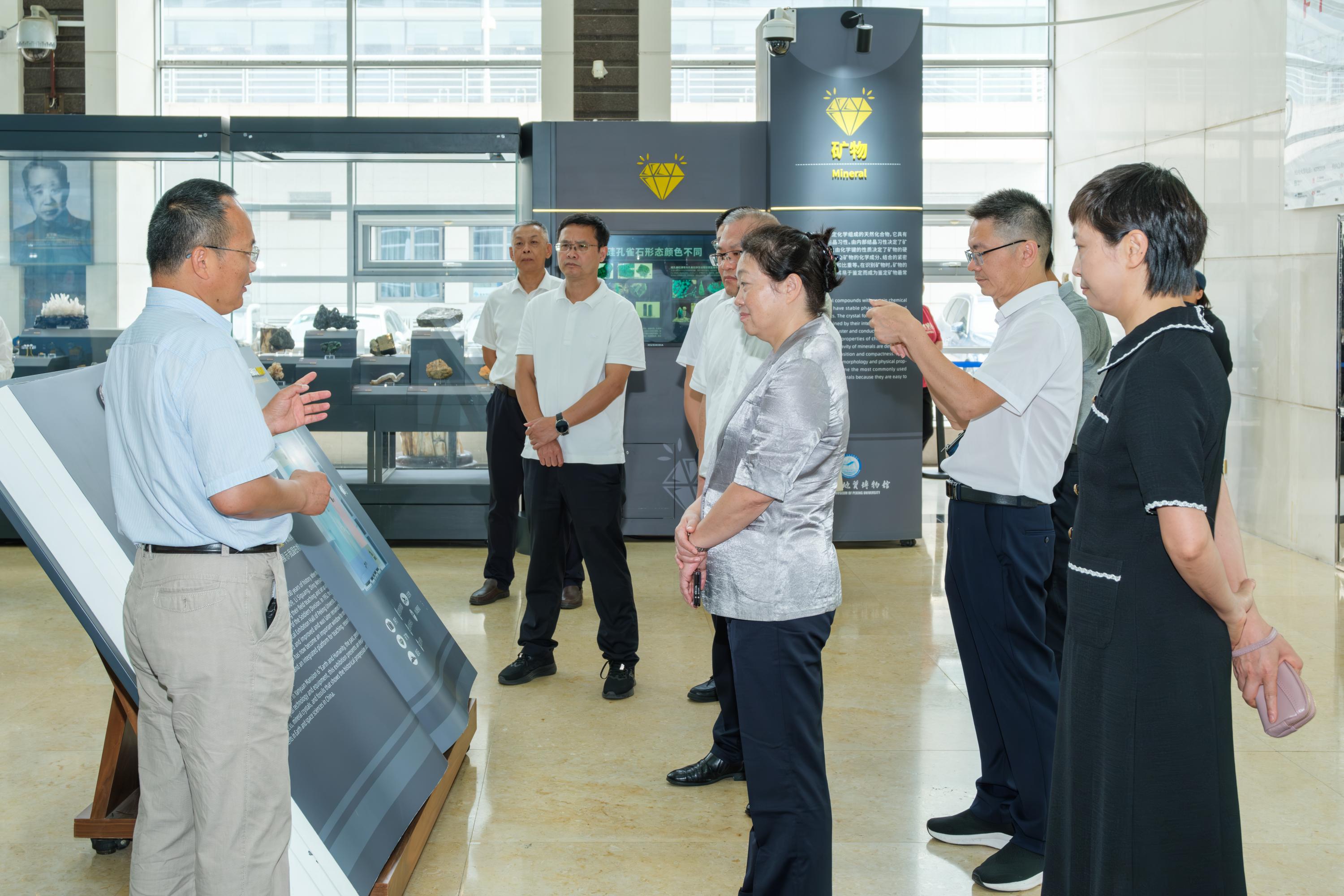 地质博物馆,听取江大勇作地质博物馆建设与地球科学科普工作情况介绍。