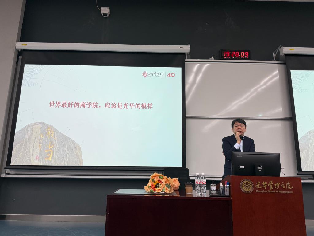 “光华第一课”是光华管理学院面向大一新生开设的特色课程,邀请学院教授、杰出校友从不同角度、不同话题切入,促进学生形成正确的人生观、价值观、世界观,帮助学生更好适应大学生活,以更高的眼界、更广的视角、更成熟的心态,迎接学习和生活上的挑战。